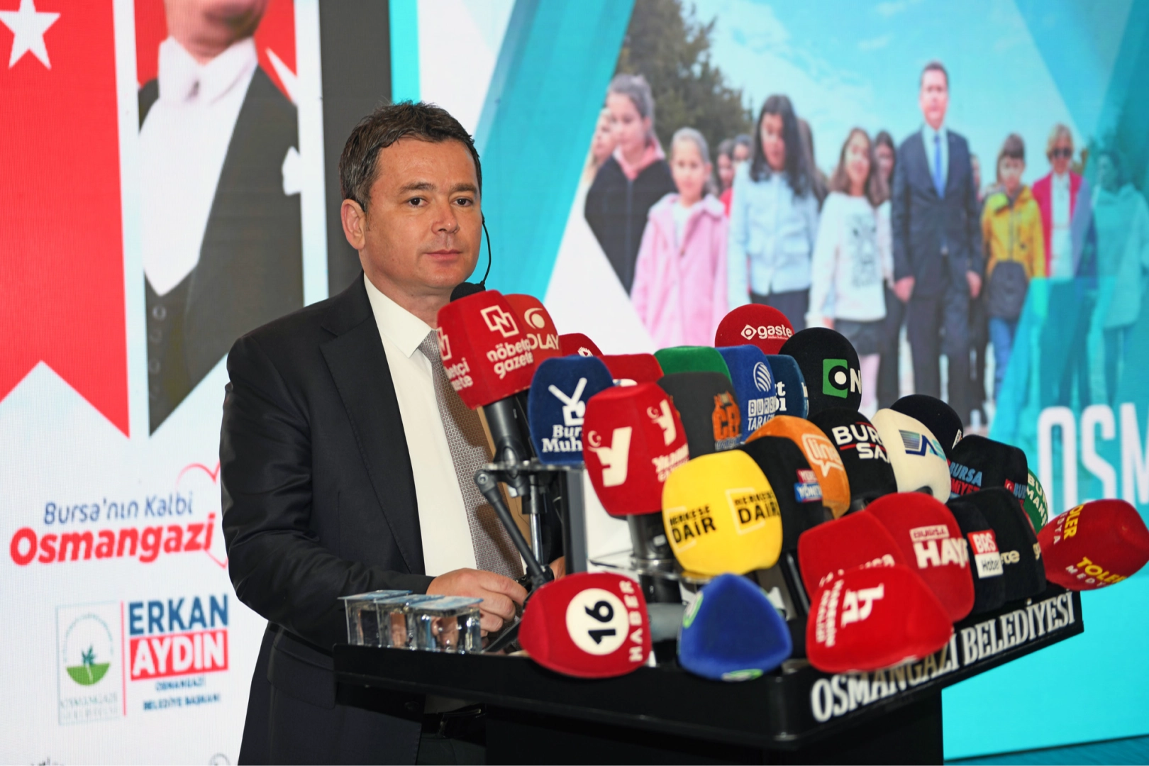 Osmangazi’de geçen bir yılın anlatıldığı kısa filmin ardından sunumuna başlayan Başkan Erkan Aydın, “Zamanın ne kadar hızlı geçtiğinin farkındayız. 8 yıllık milletvekilliği dönemim sanki 8 gün gibi geçti. Osmangazi Belediye Başkanlığı görevindeki bir yılım da sanki bir gün gibi geçti. Zamanın çok hızlı geçtiğinin bilinciyle, seçilir seçilmez çalışmalara başladık. Bursa’nın kalbi Osmangazi dedik ve bu sözümüze ve ilçemize yakışır hizmetler yaptık. Önümüzdeki 4 yılda da aynı hızla çalışmalarımıza devam edeceğiz” dedi.