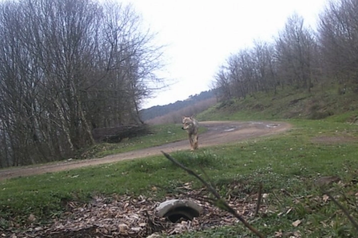 Yabani hayvanların yaşadığı dağ yolu üzerinden geçen bir kurt ile yine ormanlık alanda bulunan yabani bir tavşan fotokapan tarafından görüntülendi.