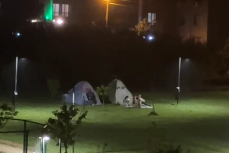 Bursa'nın Nilüfer İlçesi Görükle Mahallesi'nde vatandaşlar, açıklık bir alanda bulunan parka çadırlarını kurarak, serinleyen havaya rağmen evlerine girmemek için dışarıda konaklamaya başladılar.