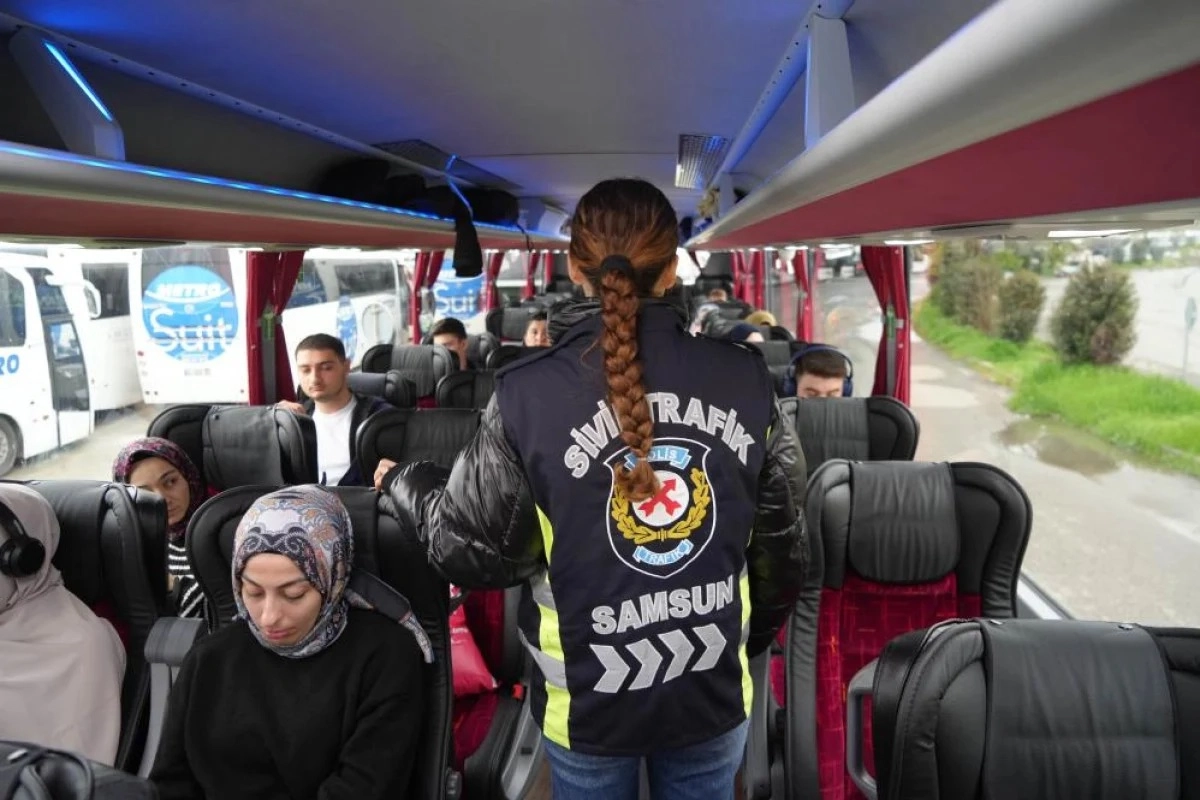 Uygulama kapsamında polis ekipleri, terminalden çıkış yapan otobüsleri durdurarak, "Sayın yolcular; hepinize hayırlı yolculuklar diliyoruz. Samsun İl Emniyet Müdürlüğü olarak herkese ‘hayırlı yolculuklar’ diliyoruz. Emniyet kemeri takmak yasal bir zorunluluktur. Aynı zamanda kendi can güvenliğiniz açısından da önem arz etmektedir. Emniyet kemeri takmak, kaza anında ölüm ve yaralanma riskini en aza indirir. Bu nedenle yolculuk esnasında emniyet kemerleriniz lütfen takılı vaziyette seyahat edelim" ifadelerini kullandılar.