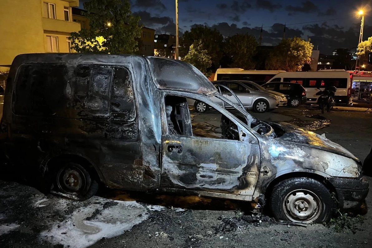 İstanbul'un Küçükçekmece ilçesi Kanarya Mahallesi'ndeki boş arazide park halindeki hafif ticari araç, bilinmeyen bir nedenle alevli şekilde yanmaya başladı.