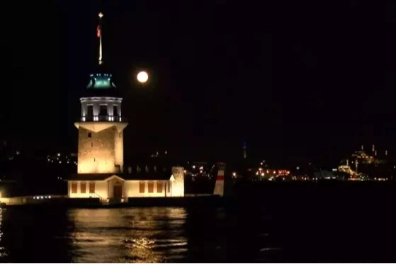 İstanbul'da baharın habercisi olarak bilinen ve 'Pembe Ay' adıyla anılan Dolunay, gökyüzünde görsel şölen oluşturdu. Türkiye'nin birçok yerinden görülen ve saat 06.24'te tamamen batan renkli Dolunay, battığı sırada Üsküdar sahilde, Kız Kulesi ile birlikte ortaya eşsiz bir manzara çıktı. Bu gece, Türkiye'nin birçok yerinde gözlemlenen baharın habercisi olarak da bilinen ve 'Pembe Ay' adıyla anılan Dolunay, sabah saat 06.24'te battı. Battığı sırada İstanbul'un simge eserleriyle bir araya gelince eşsiz görüntüler oluştu. Üsküdar sahilde Kız Kulesi ile aynı kareye giren Dolunay, İstanbul'un birçok yerinden gözlemlendi.