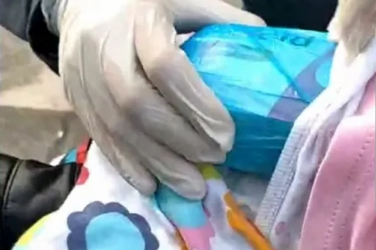 Şüphelilerin üzerinde bir bulguya rastlayamayan ekipler, D.D'nin 3 aylık bebeği T.K'nın karın bölgesinde ilaç kutusu içerisine gizlenmiş 162,55 gram metamfetamin ele geçirdi.