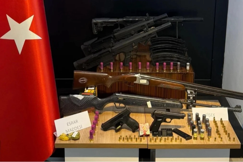 Antalya İl Emniyet Müdürlüğü birimlerinin katılımıyla gerçekleştirilen operasyonda, yapılan aramalarda 7 adet pompalı tüfek, 2 adet ruhsatsız tabanca, 129 adet kartuş, 100 adet fişek ile 9 gram esrar ele geçirildi.