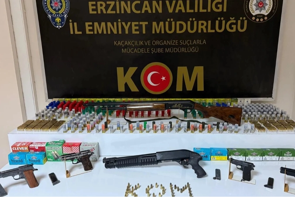 İl Emniyet Müdürlüğümüz Kaçakçılık ve Organize Suçlarla Mücadele Şube Müdürlüğü ve Refahiye İlçe Emniyet Müdürlüğü ekiplerince, Refahiye ilçesinde 6136 SKM suçunun önlenmesi, faillerin tespiti, şüphelilerin yakalanması ve suç unsurlarının ele geçirilmesi amacı ile yapılan teknik ve fiziki takip çalışmalarının sonucunda N.T, N.K. ve D.Y. isimli şahıslara ait toplam 7 adreste yapılan aramada; 4 adet tabanca ve tabancalara ait 5 adet şarjör, 2 adet pompalı tüfek, 322 adet kartuş, farklı marka ve ebatlarda toplamda 794 adet fişek ele geçirilerek el konulmuştur. N.T. ve D.Y. isimli şüpheli şahıslar çıkarıldıkları mahkemece tutuklanmış, N.K. isimli şüpheli şahıs ise adli kontrol şartıyla serbest bırakılmıştır.