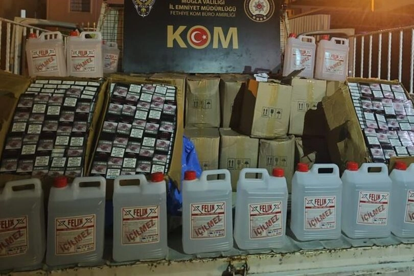 Muğla İl Emniyet Müdürlüğü Fethiye Kaçakçılık ve Organize Suçlarla Mücadele (KOM) Şubesi ekipleri, kaçak ve sahte içki üretiminin önlenmesine yönelik çalışma yürüttü.Bu kapsamda alkol üretimi yapıldığı belirlenen 2 depoya operasyon düzenlendi.Yapılan aramada, 1 ton 100 litre etil alkol, 1 ton 980 litre sahte şarap, ruhsatsız tabanca, 10 fişek ile 1250 paket kaçak sigara ele geçirildi.Şüpheliler hakkında adli işlem yapıldı.