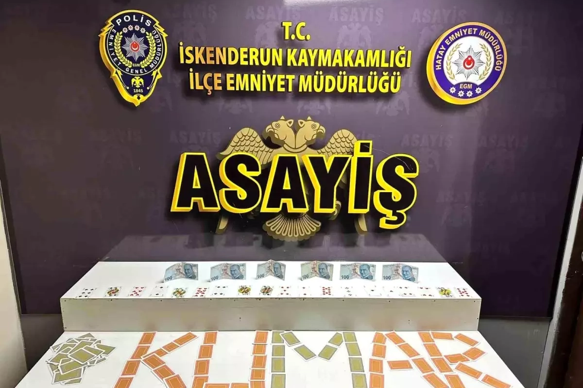 Hatay'ın İskenderun ilçesinde kumar oynarken suçüstü yakalanan 4 şahsa toplamda 36 bin 988 TL para cezası uygulandı.İskenderun İlçe Emniyet Müdürlüğü ekipleri kentte huzuru ve asayişi sağlamak amacıyla çalışmalarını aralıksız sürdürüyor. Polis ekiplerince kumar oynanması için yer ve imkan sağlama suçlarıyla mücadele çerçevesinde İskenderun Muradiye Mahallesi'nde faaliyet gösteren kıraathanede 4 şahsın kumar oynadığı suçüstü yapılarak tespit edildi. Masada bulunan 600 TL para ve 106 adet iskambil kağıdı muhafaza altına alındı.Olayla ilgili olarak iş yeri işletmecisi M.A.B hakkında gerekli yasal işlemler yapılırken kumar oynayan şahıslara toplam 36 bin 988 TL idari para cezası düzenlendi.