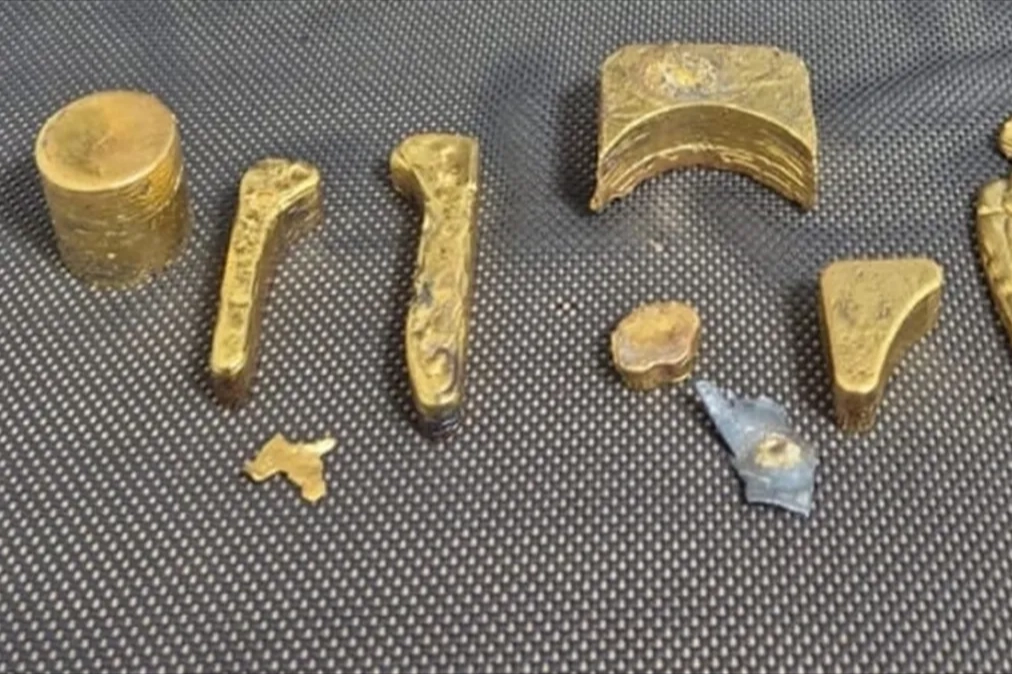 Taksinin yolcusu C.T.’ye ait 2 valizde yapılan aramada, kıyma ve hamur yoğurma makineleri ile 2 ayakkabı üretim kalıbı içerisine gizlenmiş toplam 21 kilo 506 gram kaçak altın bulundu.