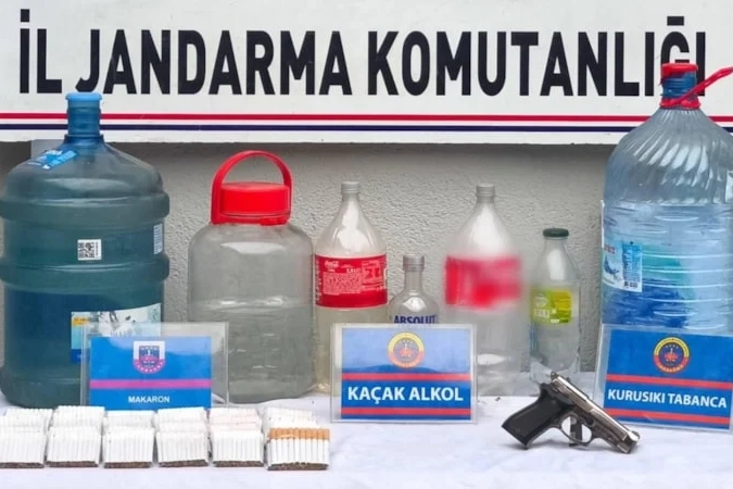 Alınan istihbarat üzerine harekete geçen ekipler, 61 yaşındaki A.C. isimli şüpheliye ait adreste yaptıkları aramada 25 litre sahte rakı, 620 adet içime hazır makaron ile 1 adet kurusıkı tabanca ele geçirdi.