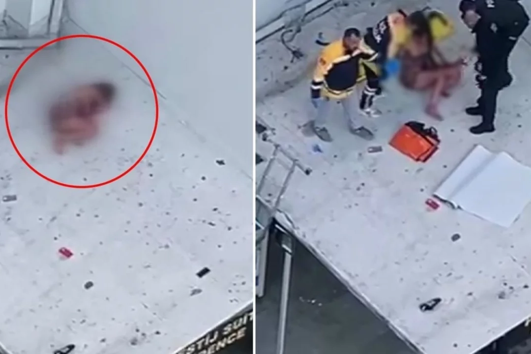 Seslerin duyulmasından kısa bir süre sonra ise 6'ncı katta bulunan dairenin penceresine yönelen kadın, kendini aşağı bıraktı. Metrelerce yüksekten yere düşen kadın ağır şekilde yaralandı.