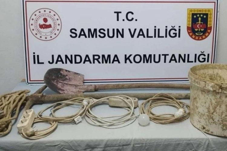 Vezirköprü İlçe Jandarma Komutanlığı ekipleri, metruk bir binada kazı yapıldığı ihbarı üzerine hareke geçti. Yapılan operasyonda, M.O. ve oğlu Y.O., kazı yaparken yakalandı.