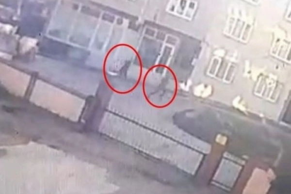 Çevredeki bir apartmanın güvenlik kamerasınca kaydedilen görüntülerde, zanlının otomobiliyle geçtikten bir süre sonra kız kardeşlerin koşarak kaçmaya çalıştıkları ve T.S'nin arkalarından ateş ettiği anlar yer aldı.