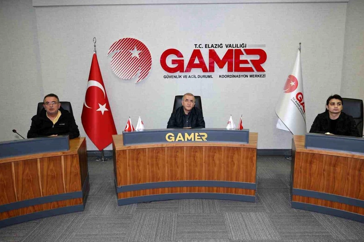 Elazığ'da etkili olan sağanak ve dolu yağışı nedeniyle hayat durma noktasına geldi. Vali Numan Hatipoğlu, Güvenlik ve Acil Durumlar Koordinasyon Merkezi'nde (GAMER) ilgili kurum müdürleri ile durum değerlendirme toplantısı gerçekleştirdi. Vali Hatipoğlu, toplantının ardından yaptığı açıklamada, "İlimizde saat 13.40 civarında Koruk köyü civarında başlayan dolu ve akabinde akşam il merkezimizde de yağışlar dolu şeklinde görülmüştür. Koruk civarında görülen doludan etkilenen Koruk, Pirinçci, Balıbey, Muratçık, Hıdırbaba, Alatarla, Altınkuşak, Alaca, Dambüyük ve Esenkent köylerimizdir. Bu köylerimizde bağ, arpa, mercimek, nohut, badem ve ceviz alanlarında hasar tespit çalışmalarımız devam edecektir. Çiftçilerimize, üreticilerimize, etkilenen vatandaşlarımıza geçmiş olsun dileklerimi iletiyorum. Yine il merkezimizde akşam saatlerinde başlayan doludan mütevellit 95 civarında ihbar 112 Acil Çağrı Merkezimize intikal etmiştir. Bunların bir kısmı bodrumlara suların dolması ve mahsur kalma şeklindedir. Bunların tamamına ekiplerimizce müdahale edilmektedir. İlimizde akşam saatlerindeki yağış miktarı ise yaklaşık olarak metrekareye 21.2'dir. Tekrar vatandaşlarımıza geçmiş olsun dileklerimi iletiyorum" ifadelerini kullandı.