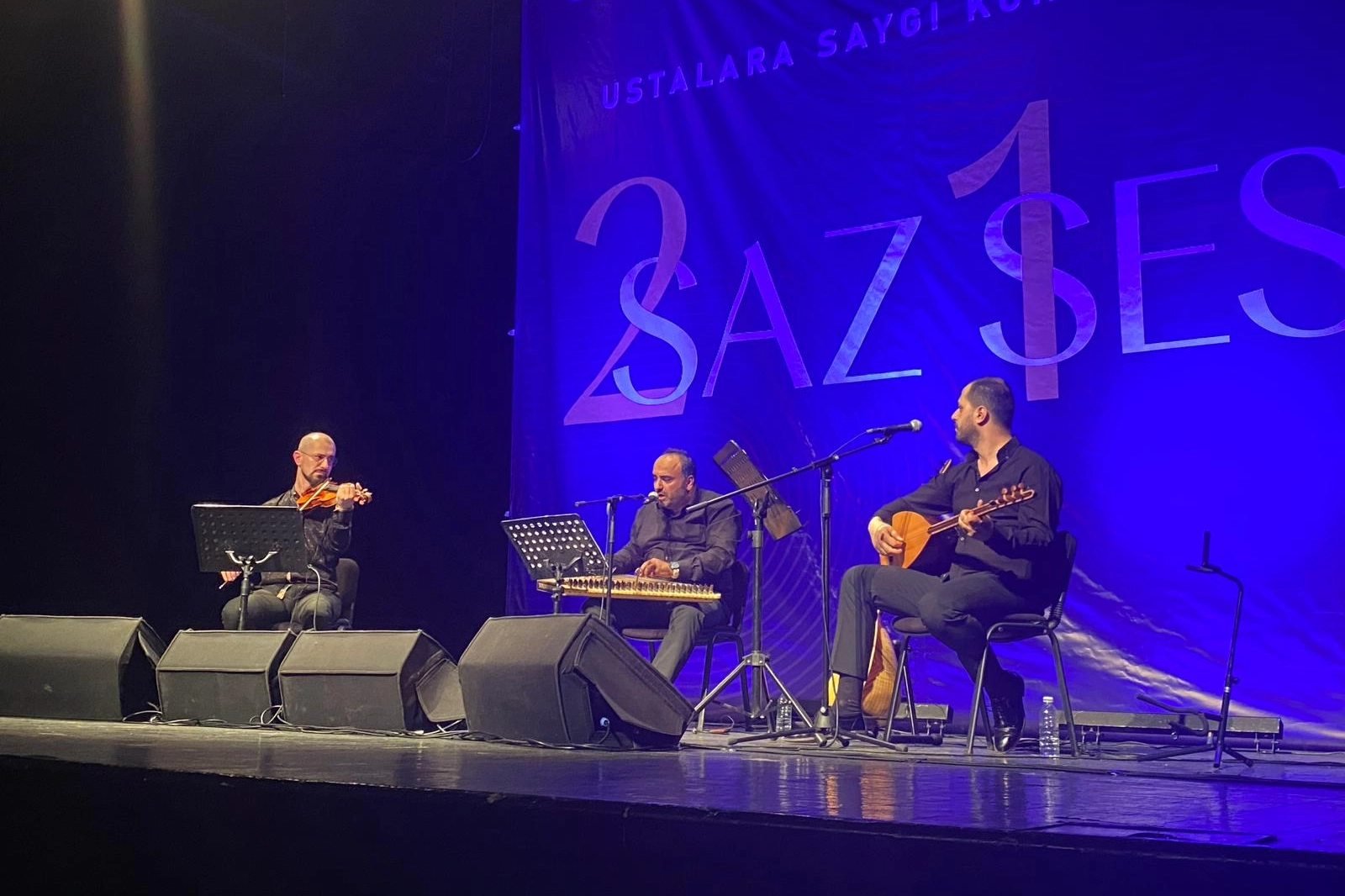Nilüfer Belediyesi tarafından hayata geçirilen “2Saz 1Ses: Ustalara Saygı” konserleri serisi, üçüncü ve kapanış programıyla sona erdi. Nazım Hikmet Kültürevi’nde düzenlenen gecede, Ozan Sari kemanıyla, Mahmut Cemal Sari bağlamasıyla sahne aldı. Gecenin konuk sanatçısı ise Bursa Devlet Klasik Türk Müziği Korosu sazendelerinden kanun sanatçısı Savaş Özkök oldu. Özkök, kanunu ve güçlü sesiyle performansıyla eşlik ederek geceye ayrı bir renk kanttı.