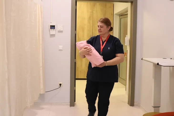 Akıncı, yüzlerce doğum yaptırdığını belirterek, "Annesinden önce biz ona dokunuyoruz, ellerimize geliyor. Çığlık ve nefes alma mücadelesi veriyor, sonrasında onun sırtını sıvazlıyoruz. Daha da rahat nefes almasını sağladığımızda 'oh' diyoruz çünkü her doğum bir sürprizdir. Ağlama sesi geldiğinde mutluluk hissi gerçekten de tarif edilemez." ifadelerini kullandı.