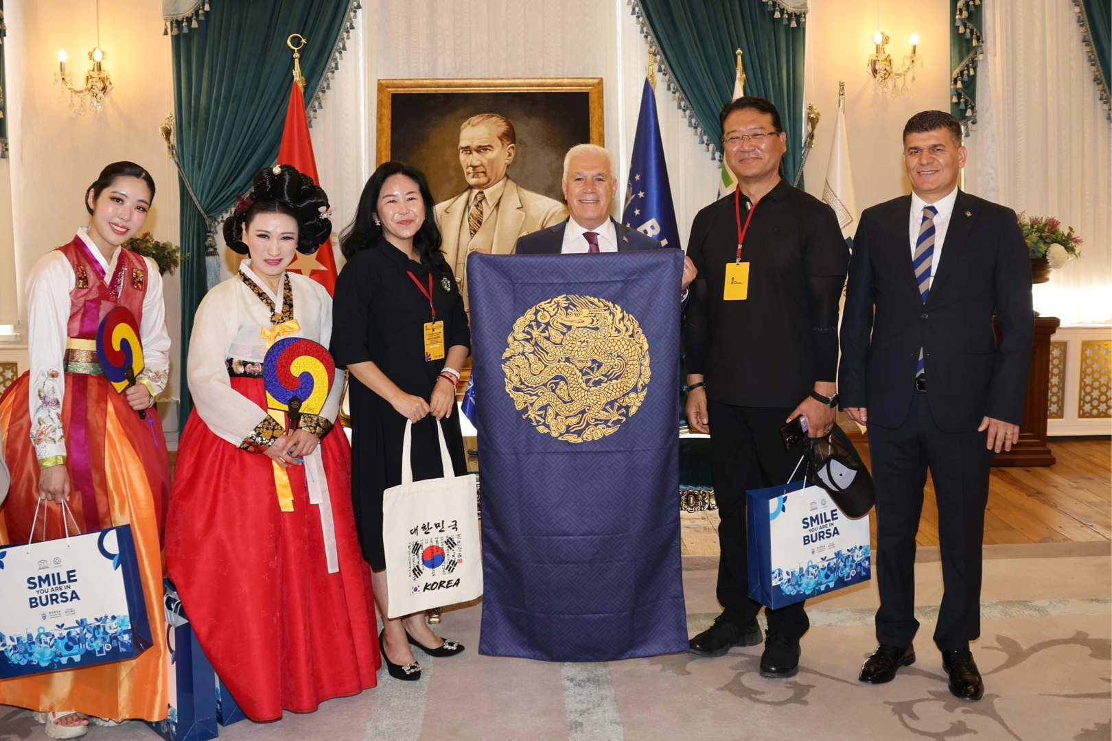 Bursa Büyükşehir Belediyesi adına Bursa Kültür Sanat ve Turizm Vakfı (BKSTV) tarafından düzenlenen 37. Uluslararası Altın Karagöz Halk Dansları Yarışması'na katılan ülkelerin temsilcileri ve yarışmanın jüri üyeleri, Bursa Büyükşehir Belediye Başkanı Mustafa Bozbey’i Tarihi Belediye Binası’nda ziyaret etti. Arjantin, Bulgaristan, Çin, Güney Kore, Gürcistan, İspanya, Kazakistan, Kuzey Kıbrıs Türk Cumhuriyeti, Kolombiya, Kuzey Makedonya, Meksika, Mısır, Panama, Porto Riko, Rusya, Yunanistan’dan gelen ekiplerin yanı sıra 25 yerel halk dansları topluluğunun temsilcileri de ziyarette yer aldı.