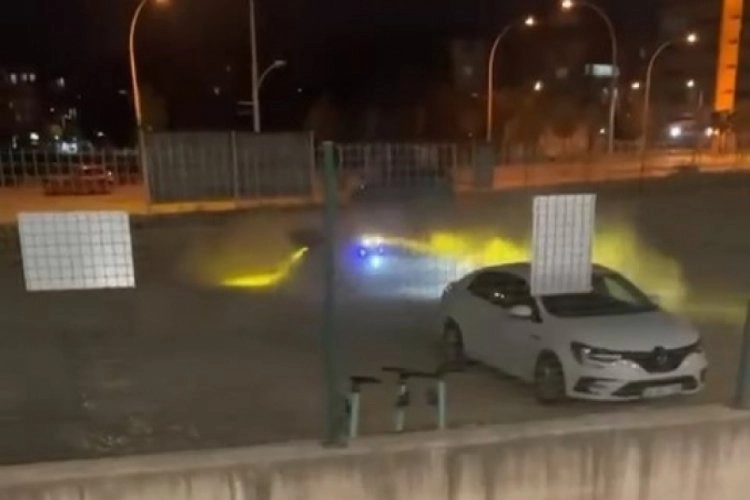 Plakası ve kimliği henüz öğrenilemeyen gençler atv aracı ile drift atmaya başladı. Drift atan gençler metro bekleyen vatandaşları toza boğdu. Drift anları saniye saniye amatör kameraya yansıdı.