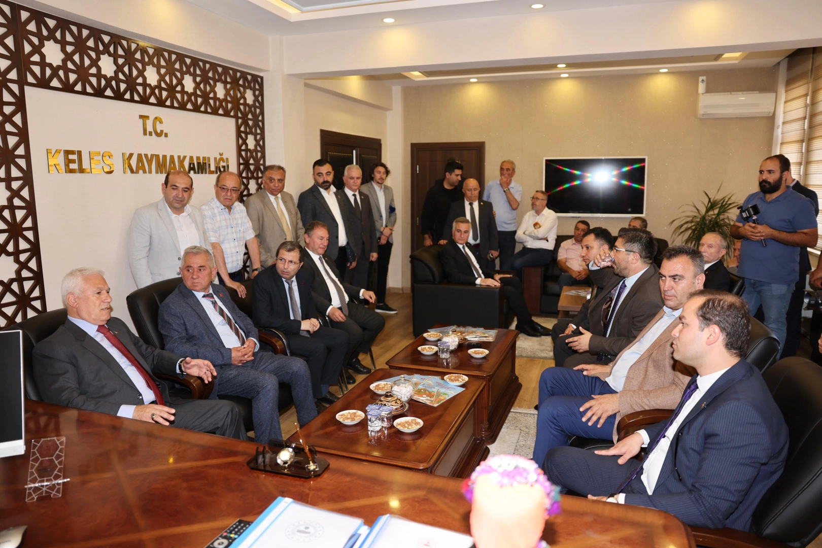 Bursa Büyükşehir Belediye Başkanı Mustafa Bozbey, ‘Başkan Bozbey Burada’ projesi kapsamında Keles ilçesini ikinci kez ziyaret ederek vatandaşlarla buluştu. İlk olarak Keles Kaymakamı Muhammed Ali Yolal’ı makamında ziyaret eden Başkan Bozbey’e, CHP Keles İlçe Başkanı Cevat Acar da eşlik etti. Ziyarette, Keles’i güçlendirmek, çiftçiyi desteklemek amacıyla yapılacak çalışmalar ele alındı. Başkan Mustafa Bozbey, program kapsamında Keles Belediye Başkanı Ali Doğru’yla da bir araya geldi. Keles’in ihtiyaçlarının, önceliklerinin ve birlikte hayata geçirilebilecek projelerin konuşulduğu buluşmada, devam eden çalışmalar değerlendirildi. Daha sonra Keles Kültür Merkezi’nde muhtarlarla bir araya gelen Başkan Bozbey, köylerin ve mahallelerin sorunlarını yerinde dinleyerek çözüm önerilerini değerlendirdi. Keles Ziraat Odası ile Esnaf ve Sanatkârlar Odası’nı da ziyaret eden Başkan Bozbey, çiftçilerin ve esnafın emeğini destekleyen projeleri sürdüreceklerini belirtti. Ziyaretlerin ardından Keles Bayrak Alanı’nda vatandaşlarla buluşan Başkan Bozbey, halkın talep ve önerileri dinleyerek çalışmalar ve projeler hakkında bilgi verdi.