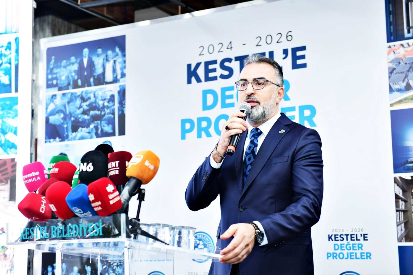 Kestel Belediye Başkanı Ferhat Erol, İlçenin bugününü ve yarınını şekillendiren, her mahallesine dokunan yatırımlar, sosyal projeler ve altyapı hamlelerini tanıtmak üzere basın toplantısı düzenledi. Başkan Erol, düzenlediği basın toplantısında Kestel’de hayata geçirilen yatırımlar, devam eden çalışmalar ve planlanan projeleri geniş bir çerçevede ele alırken, ilçenin gelişim vizyonu ve hizmet öncelikleri detaylarıyla da paylaştı.