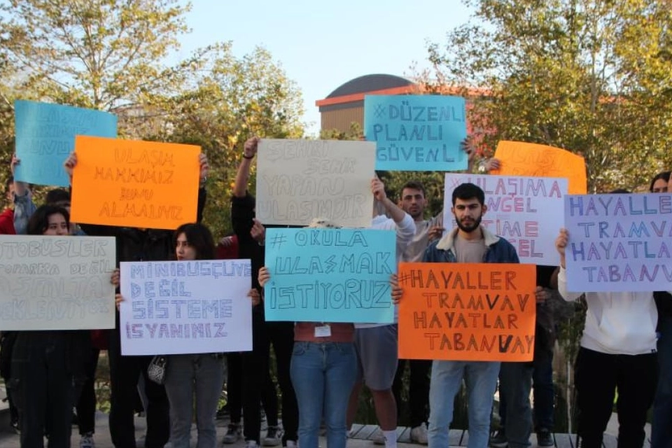 Ardından kendilerinden fazla polis korteji eşliğinde Cumhuriyet Meydanı'na giden öğrenciler 'Hayaller tramvay hayatlar tabanvay', 'Minibüsçüye değil sisteme isyanımız' pankartları taşıyan öğrenciler, 'Ulaşıma engel eğitime engel' sloganları da attı.