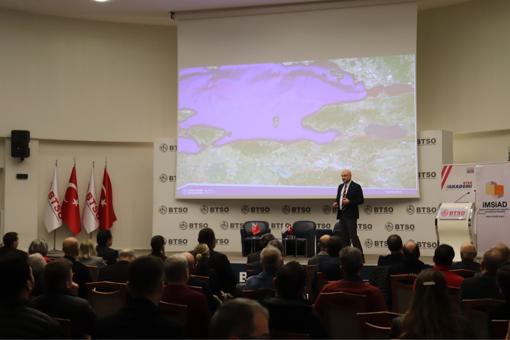 İnşaat Müteahhitleri ve İş İnsanları Derneği (İMSİAD) ile Bursa Ticaret ve Sanayi Odası (BTSO) Akademi tarafından “Tüm Yönleri ile Sismik İzolatör Tasarımı ve Uygulamaları” semineri düzenlendi.