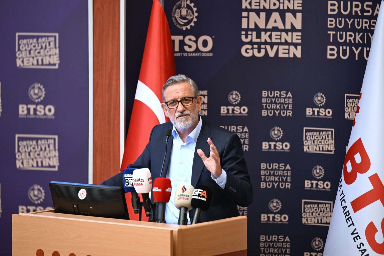 BTSO Yönetim Kurulu Başkanı İbrahim Burkay, 6 Haziran 1889 tarihinde Osman Fevzi Efendi ve arkadaşları tarafından kurulan BTSO’nun bugün süreçleri en iyi okuyan, strateji geliştiren ve buna göre aksiyon alan, Türkiye’nin medarı iftiharı bir sivil toplum kurumu olduğunu söyledi. Bursa’nın ekonomik dönüşümünün kilometre taşları olan TEKNOSAB, Model Fabrika, MESYEB, BUTEKOM gibi merkezleri iş dünyasının destekleriyle hayata geçirdiklerini belirten Başkan Burkay, savunma sanayinde yerli ve milli hedefler doğrultusunda geliştirilen projelerin de ne denli stratejik bir önemde olduğunun bulunduğumuz coğrafyadaki gelişmeler ışığında bir kez daha ortaya çıktığını söyledi.