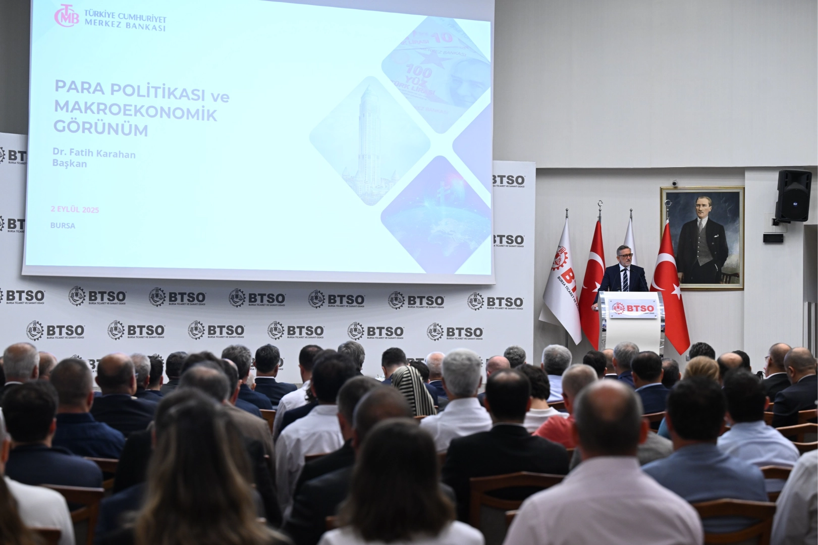 Türkiye Cumhuriyet Merkez Bankası (TCMB) Başkanı Fatih Karahan, Bursa iş dünyası ile gerçekleştirdiği buluşmada “Para Politikası ve Ekonomik Görünüm” başlıklı sunumunda, son yıllarda uygulanan sıkı para politikalarının sonuçlarını paylaştı. Karahan, Bursa bölgesinde son beş yılda bin 100’den fazla firma ile görüşme yapıldığını hatırlatarak, bu görüşmelerden elde edilen bilgilerin karar süreçlerinde yol gösterici olduğunu vurguladı.