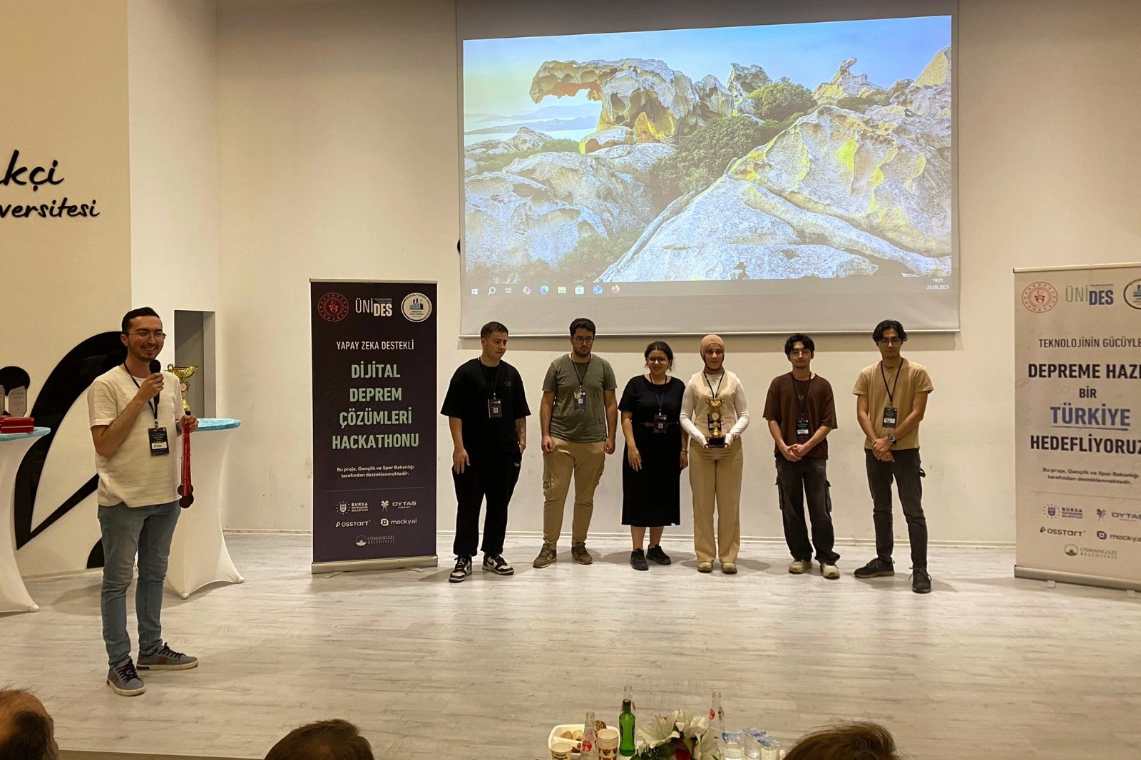 Mimar Sinan Yerleşkesi’nde, Endüstri ve Dijital Dönüşüm Topluluğu tarafından organize edilen Dijital Deprem Çözümleri Hackathonu, Gençlik ve Spor Bakanlığı ÜNİDES desteğiyle hayata geçirildi. 11 farklı takımdan oluşan 40 üniversite öğrencisi, 32 saat boyunca aralıksız çalışarak afetlere yönelik dijital çözümler üretti. Etkinlik süresince öğrenciler; deprem öncesi hazırlık, anlık müdahale ve sonrası iyileştirme süreçlerine odaklanan yazılım projeleri geliştirdi. Yarışmada birinciliği, Bursa Uludağ Üniversitesi Yönetim Bilişim Sistemleri öğrencilerinden oluşan İHAWK Takımı kazandı. Deprem sonrası yıkım tespiti ve sektörleme yapabilen bir insansız hava aracı sistemi geliştiren takım; Merve Subaşı, Ömer Turhan, Mehmet Sahaf Bayrakçı, Mohamad Alchekh ve Besmullah Nikzada’dan oluştu.