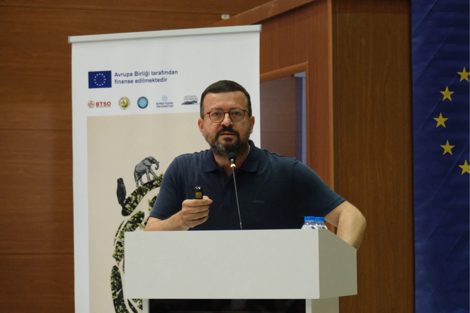 Etkinlikte konuşmacı olarak yer alan Bursa Teknik Üniversitesi Orman Mühendisliği Bölümü Öğretim Üyesi Prof. Dr. Ebubekir Gündoğdu, “Sürdürülebilirlik için atılan adımların temelinde bireysel farkındalık var. Özellikle gençlerin bu bilinci edinmeleri, geleceğin şekillenmesinde kritik rol oynuyor. Öğrencilerin çevre bilinciyle tanışması ve bunu yaşam pratiğine dönüştürmesi, sürdürülebilir geleceğin temelini oluşturuyor. Bu yaşlarda kazanılan farkındalık, sonraki nesillere de aktarılacak güçlü bir bilinç zinciridir. Avrupa ülkeleri sürdürülebilirliğe ciddi yatırımlar yapıyor, fakat bu politikaların kalıcı olması bireysel farkındalıkla mümkün. Bugün burada attığımız adım, geleceğe yapılan bir yatırımdır.” ifadelerini kullandı. Eğitim ve farkındalık çalışmalarının önemine de vurgu yapan Gündoğdu, “Orman yangınları gibi felaketlerin birçoğu, doğayı tanımayan bireylerin bilinçsiz eylemlerinden kaynaklanıyor. Oysa doğaya dönüş ancak doğanın dilini okuyabilen, ekosistemi anlayan bireylerle mümkündür. Bu yüzden eğitim ve farkındalık çalışmaları büyük önem taşıyor. Bugün burada bizlere sözünü ettiğimiz farkındalığı artırma fırsatı sunan BTSO’ya ve Bursa AB Bilgi Merkezine teşekkürlerimi sunuyorum.” ifadelerini kullandı.
