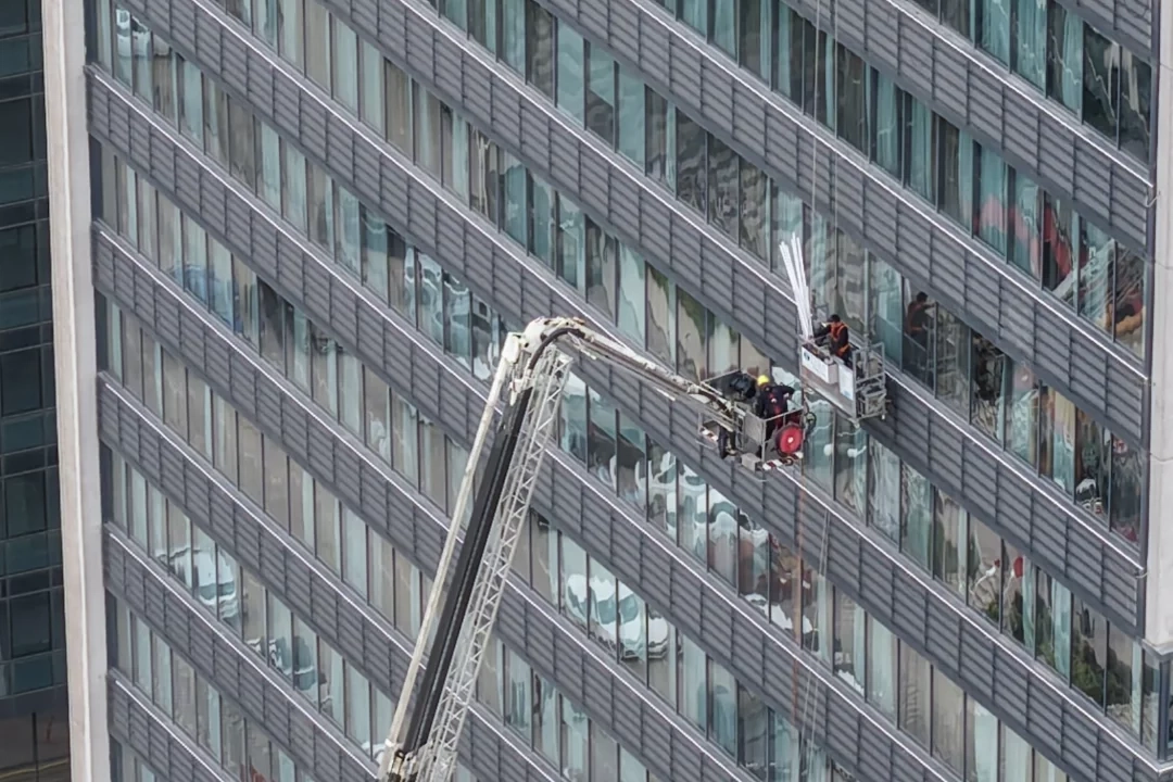 İtfaiye sepetiyle aşağıya indirilen işçilerin sağlık durumunun iyi olduğu belirtildi. Polis ekipleri olayla ilgili soruşturma başlattı. Yüzlerce kişi de kurtarma operasyonunu meraklı gözlerle izledi.
