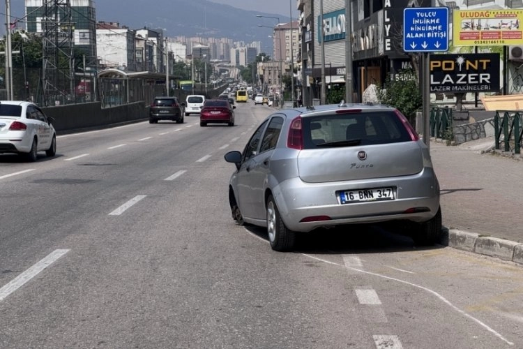Ankara Yolu Caddesi'nde seyir halinde olan 16 BNN 347 plakalı otomobilin sol ön tekeri yerinden çıktı.
