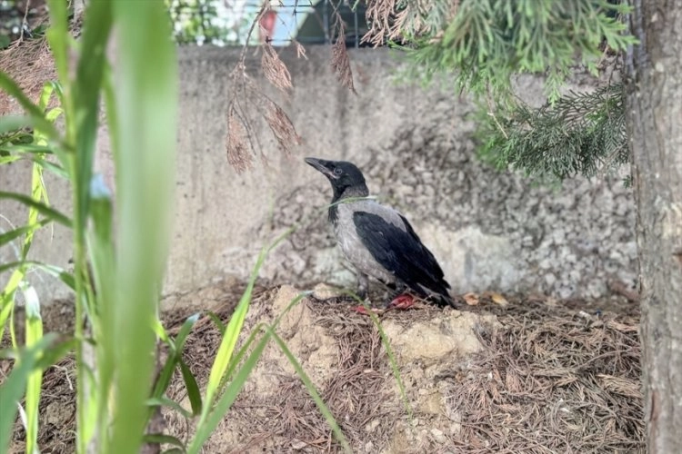 Kargaların çıkardığı sesler ve yaralı karganın bulunduğu anlar, Anadolu Ajansı (AA) ekibince görüntülendi.