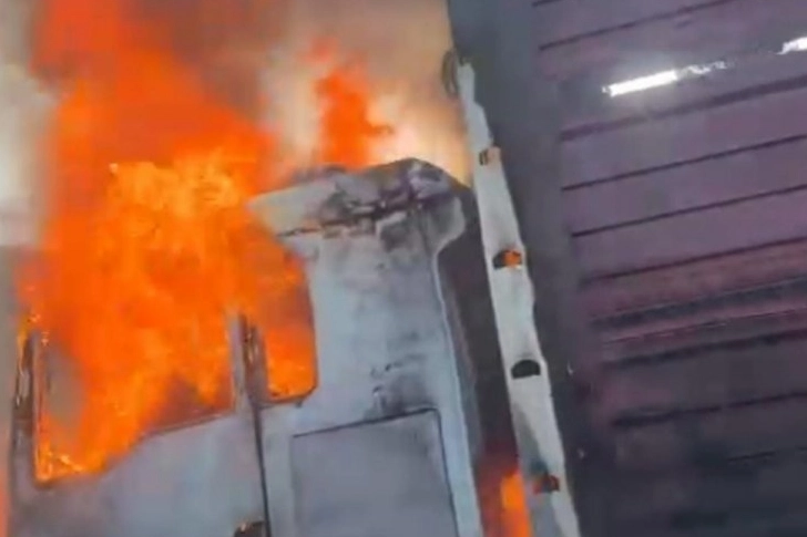 Kısa sürede büyüyen alevler, kamyonu sararken polis ekipleri trafikte güvenlik önlemi aldı.