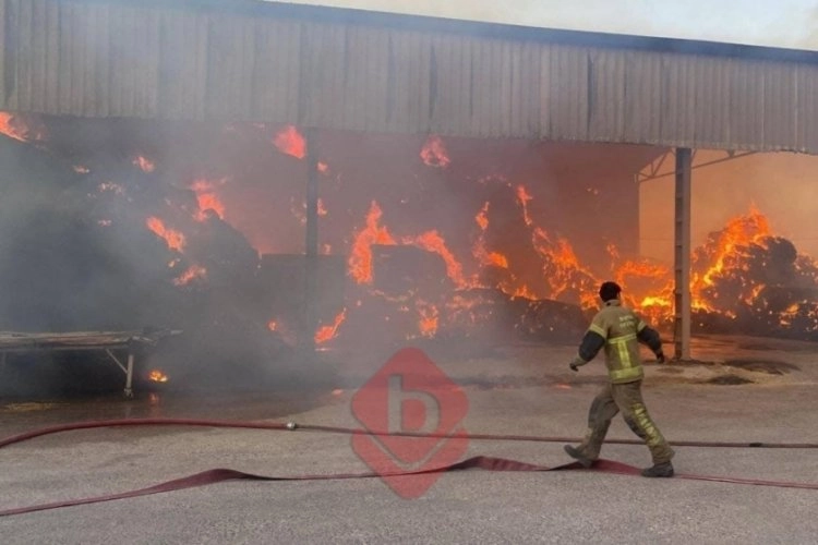 Çıkan yangın, ekiplerin yaklaşık 2 saat süren çalışmaları sonucunda kontrol altına alınırken, ilk belirlemelere göre alevlere teslim olan yaklaşık 500 ton ağırlığında ki saman balyası alevlere teslim olarak küle döndü.