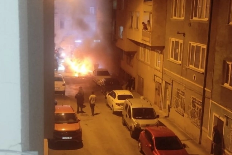 Araçtan yükselen alevler kısa sürede tüm mahalleyi aydınlattı. Gürültü sesleriyle uyanan vatandaşlar büyük panik yaşadı. Yangın, çevredeki binalardan cep telefonlarıyla görüntülendi.