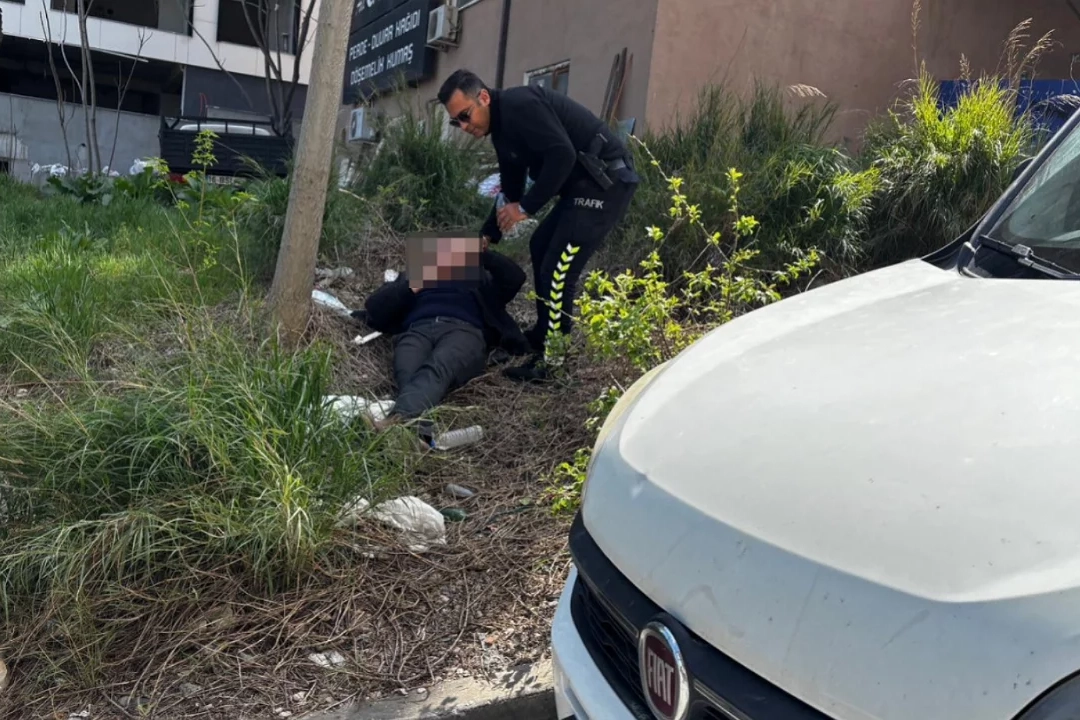 Kaza sonrası alkollü şahıs, olay yerinin hemen yanındaki çimenlik alana uzandı. Olay yerine sevk edilen polis ve sağlık ekipleri, alkollü sürücüyü dakikalarca kaldırmaya çalıştı.