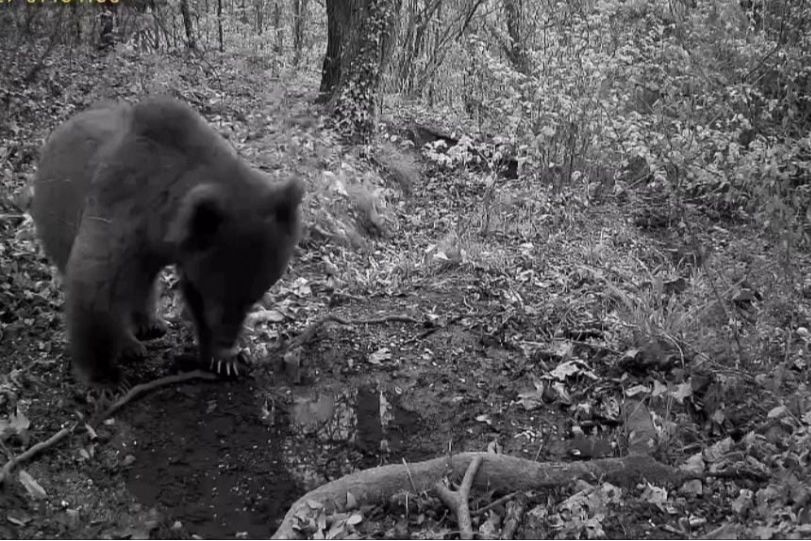 İlçe'nin en yüksek dağı olan Gürle Dağı'na yerleştirilen bir fotokapan ise su içmek için gelen iki ayıyı görüntüledi. Ayılardan birinin ise fark ettiği fotokapanın yanına gelerek kameraya dokunduğu görüntüler, an be an kaydedildi.