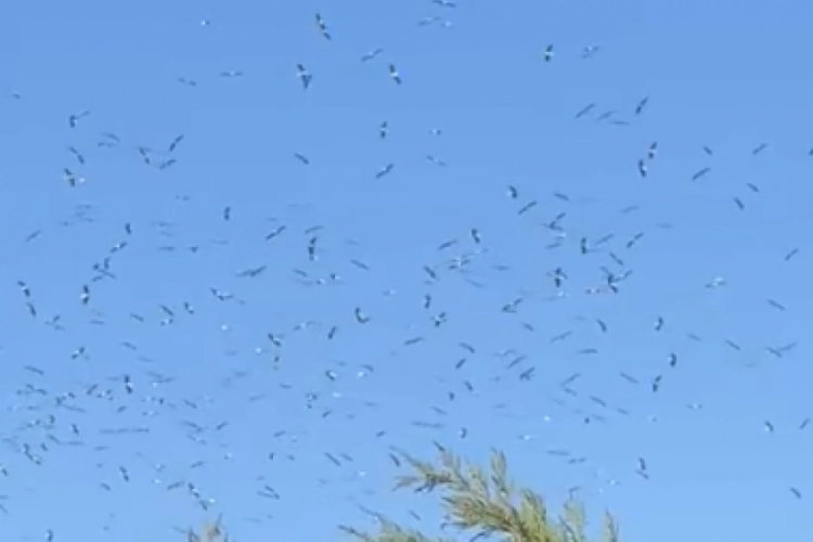 Bursa'nın Mudanya ilçesinde bağlı olan Bademli mahallesinde leylek sürüsü kameralara yansıdı.