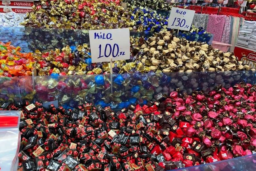 Ramazan Bayramı için ikramlık şeker ve çikolata satan Tuz Pazarı Esnafı, "Geçen bayram kilosu 60 lira olan şeker ve çikolatalar 2 katı zamlanarak 120 lira oldu. Bu zammı biz de anlayamadık" dedi.
