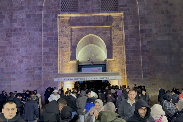 Bursa'da şaban ayının 14'üncü gününü 15'inci gününe bağlayan gece idrak edilen Berat Kandili dolayısıyla kentin dört bir yanından vatandaşlar Ulu Cami'ye geldi.