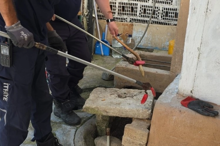Cerrah Mahallesi'nde bir evin bahçesindeki su oluğundan ses geldiğini gören vatandaşlar durumu itfaiyeye bildirdi.