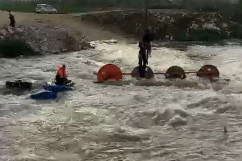 Akıntının etkisiyle traktör devrilirken, işçiler derede mahsur kaldı. İhbar üzerine olay yerine çok sayıda itfaiye, jandarma, AFAD ve arama kurtarma ekipleri sevk edildi.