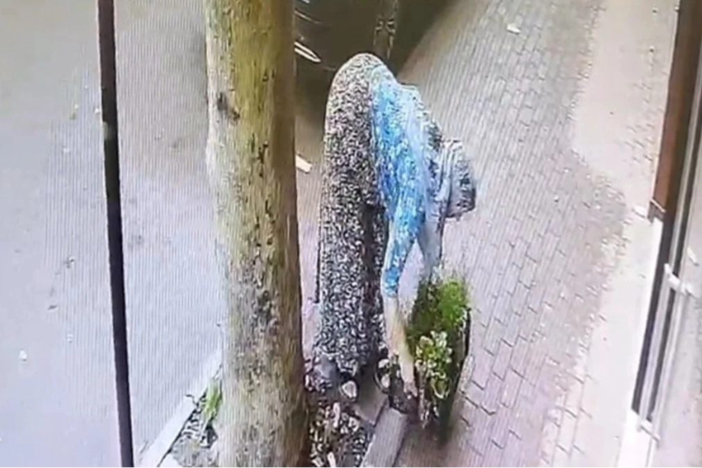 İş yeri önüne koyduğu çiçekleri bulamayan D.Ö., güvenlik kameralarını inceledi.