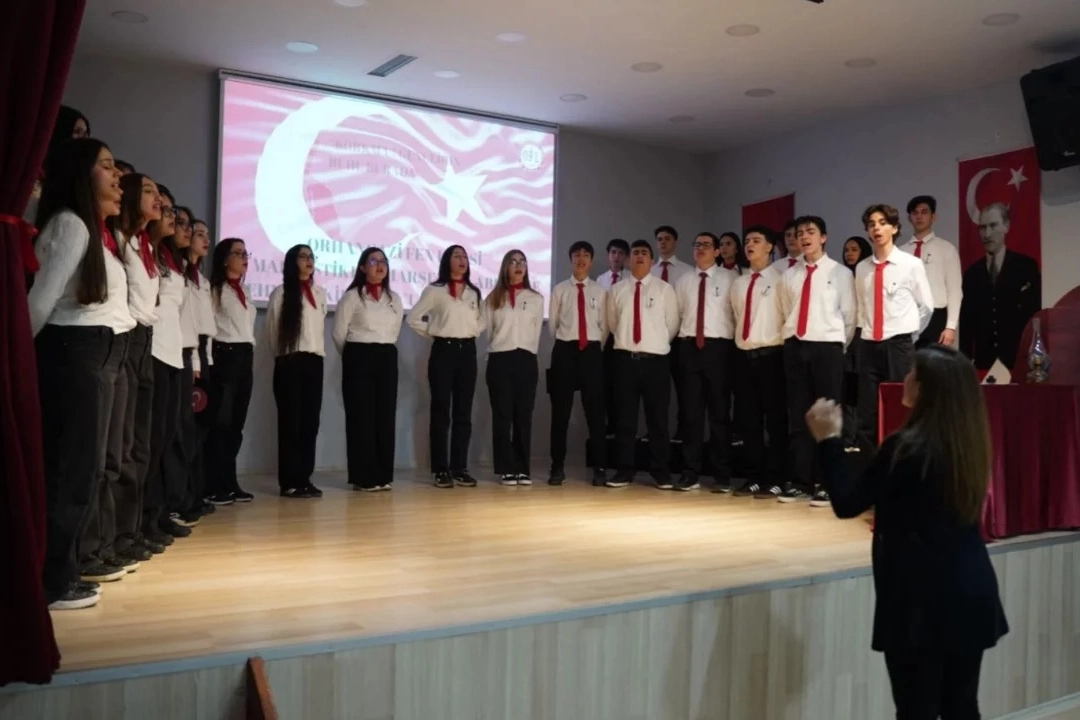 12 Mart İstiklal Marşı´nın Kabulü ve Mehmet Akif Ersoy'u Anma Programı kapsamında düzenlenen yarışmalarda dereceye giren öğrencilere ödülleri verilmesinden sonra iki öğrenci İstiklal Marşını okudu.