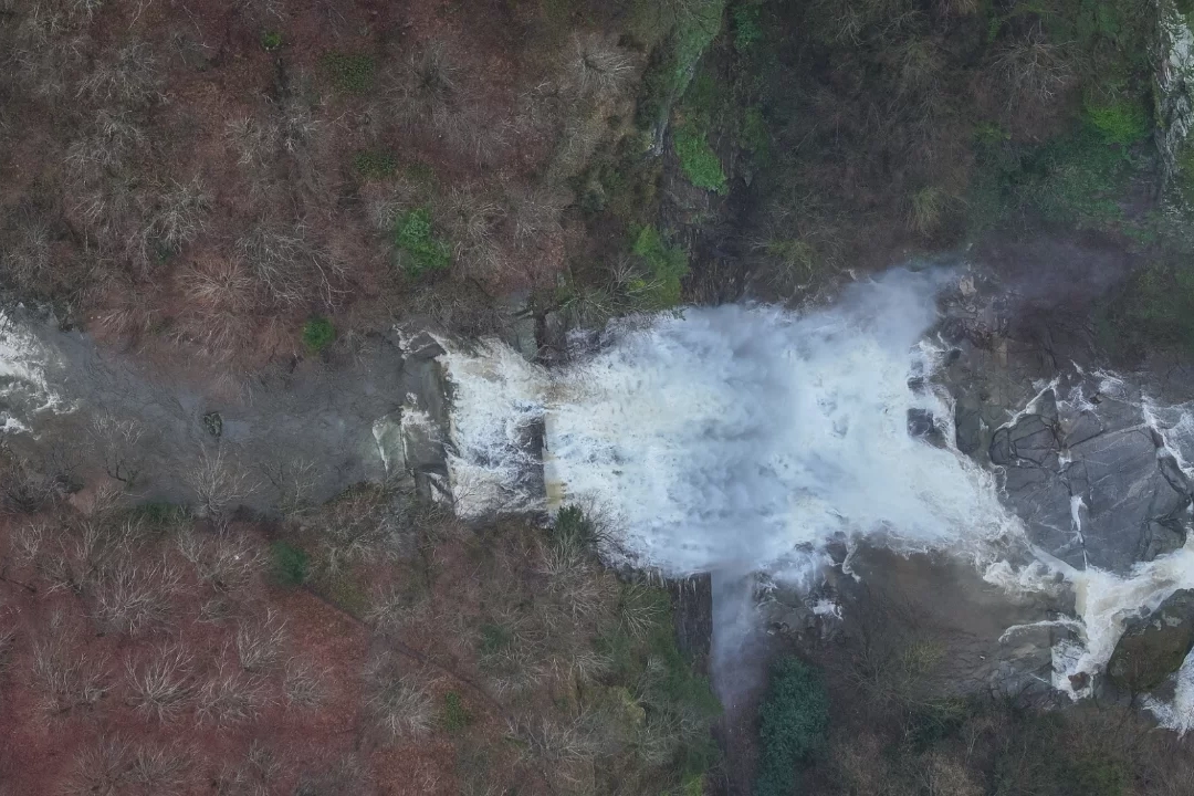 Coşkulu akan Suuçtu Şelalesi ve çevresi dronla da görüntülendi.