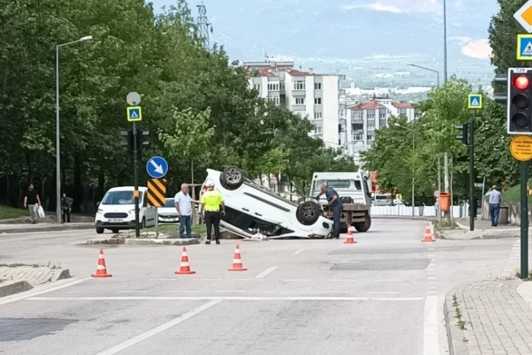 Bursa'nın Yıldırım ilçesi Kaplıkaya Mahallesinde trafik kazası yaşandı. İki aracın çarpışması sonucu meydana gelen kazada araçlardan biri takla attı. Olay yerine polis ve sağlık ekipleri sevk edildi.