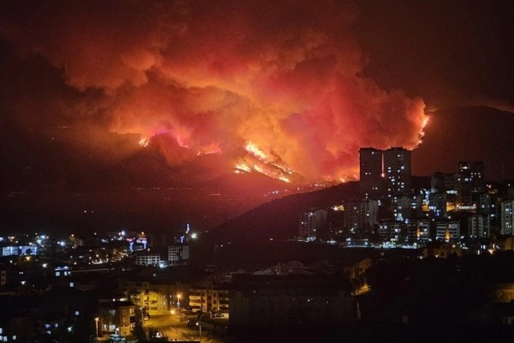 Bursa'nın Gürsu ve Kestel ilçelerinde çıkan orman yangını büyümeye devam ediyor. Yangının görüntüsü ise Bursa'nın merkez mahallelerinden de net bir şekilde gözüktü.Edinilen bilgilere göre Karahıdır Köyü, güvenlik önlemleri sebebiyle tahliye edilmeye başlandı.Minibüs ve otobüslerin tahliye için bölgeye gittiği bildirildi.
