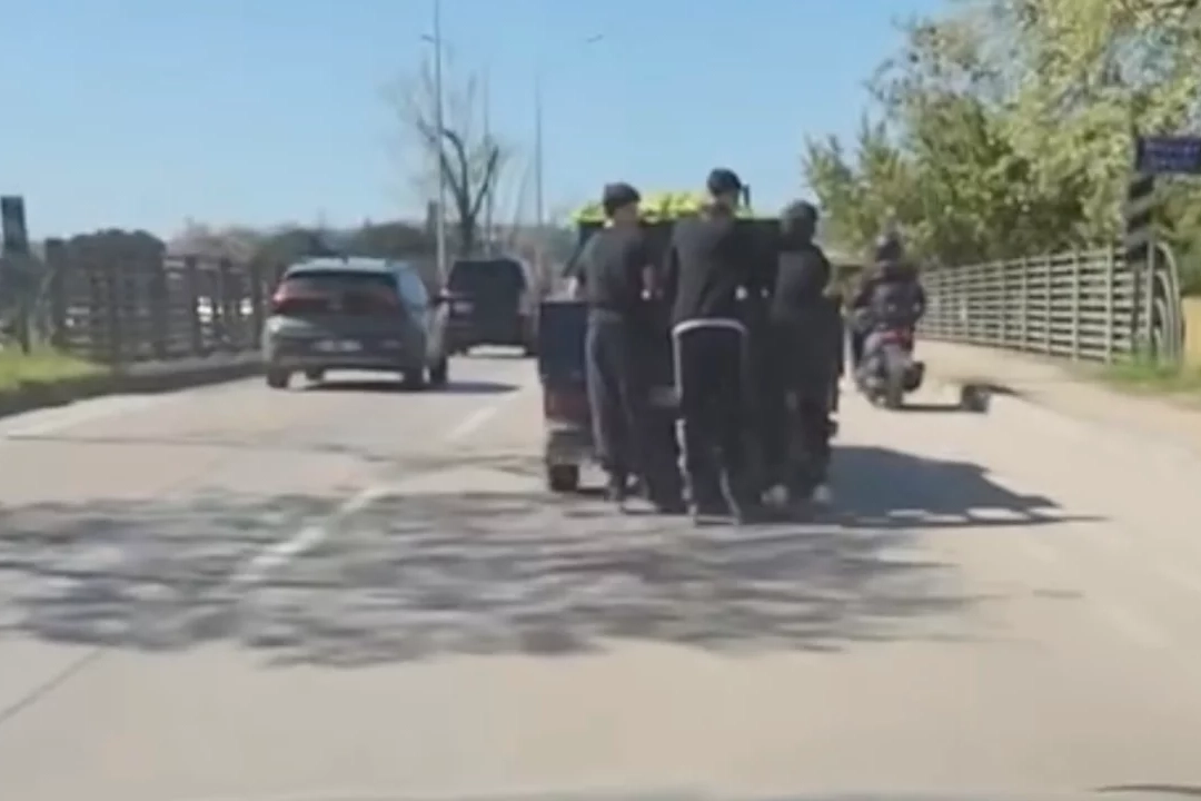 Hem kendi canlarını hem de trafikteki diğer sürücüleri riske atan gençlerin o anları, çevrede bulunan bir vatandaşın cep telefonu kamerasına yansıdı.