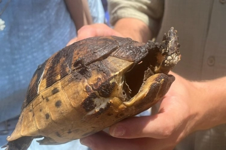 Öte yandan yangında canlılarda zarar görürken, bir kaplumbağanın da son hali dikkat çekti.