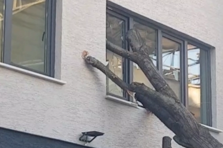 Ağaç, duvarı delerek binanın ikinci katının camının kırılmasına neden oldu.